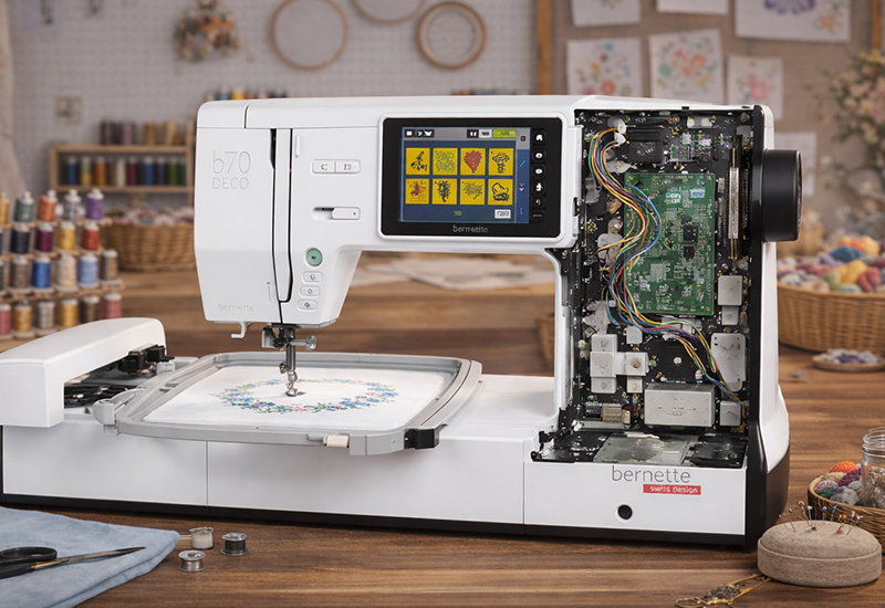 Poznaj hafciarkę, która pozwala tworzyć efektowne, perfekcyjnie dopracowane hafty w domowej pracowni i przy intensywniejszym użytkowaniu. Bernette B70 Deco łączy wygodę obsługi, solidną konstrukcję i funkcje, które realnie skracają czas pracy, a jednocześnie podnoszą jakość wykończenia.