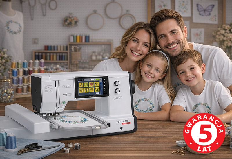Wyobraź sobie, że w kilka chwil zamieniasz zwykłą bluzę w unikat, ręcznik w elegancki prezent, a metkę „handmade” w znak rozpoznawczy Twojej marki. Bernette B70 Deco to hafciarka stworzona dla osób, które chcą tworzyć efektowne hafty szybko, wygodnie i z pewnością, że każdy detal będzie dopracowany. Solidna, intuicyjna i gotowa na intensywniejsze użytkowanie – po prostu sprzęt, który realnie ułatwia pracę i podnosi jakość efektu końcowego.