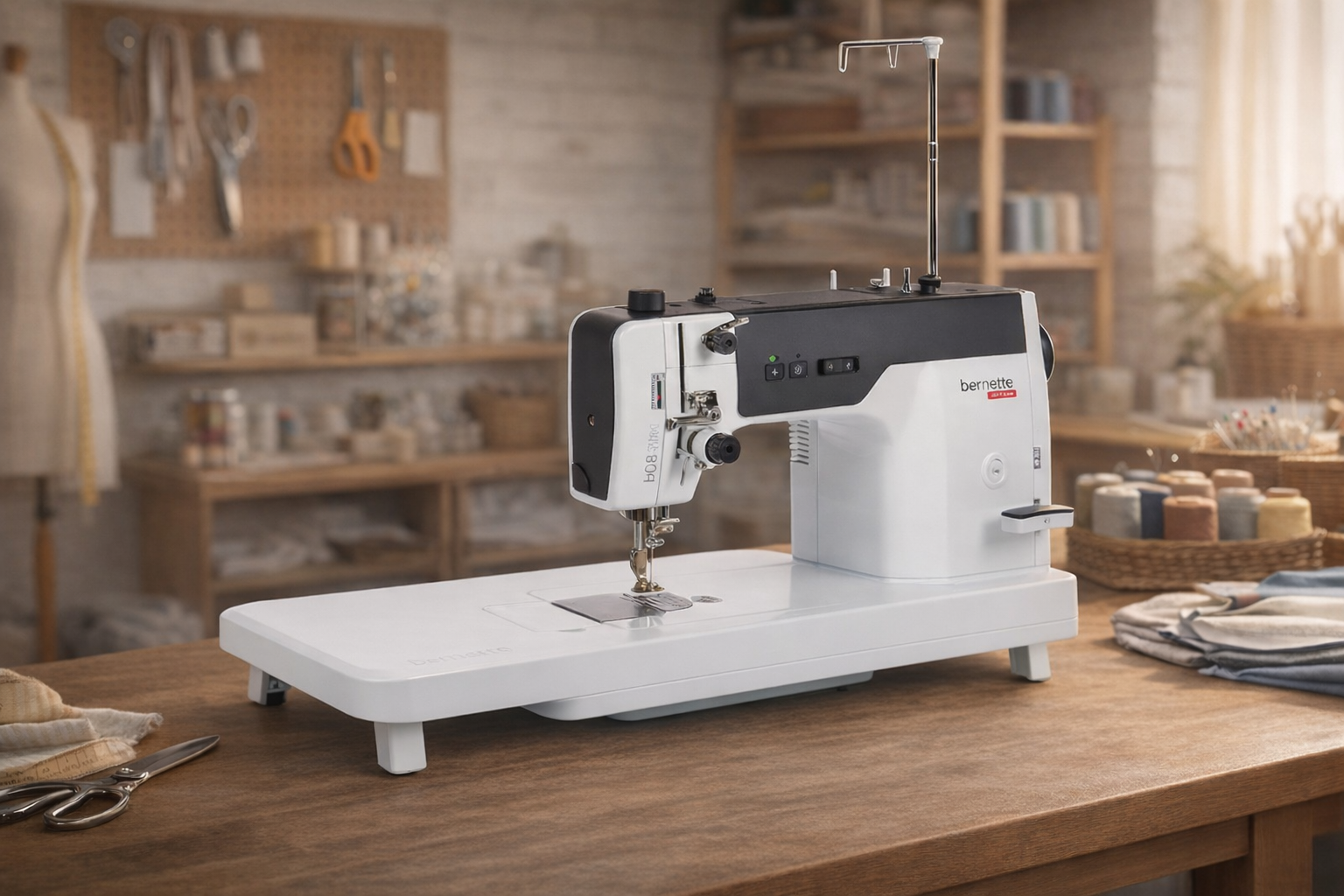 Wyobraź sobie maszynę, która szyje równo, szybko i bez zawahań – nawet wtedy, gdy materiał robi się gruby, wielowarstwowy albo po prostu „trudny”. Bernette 08 Straight Stitch to półprzemysłowa stebnówka Bernette High Speed – Heavy Duty stworzona dla osób, które nie mają miejsca na pełną przemysłówkę, ale oczekują tempa, precyzji i powtarzalnej jakości ściegu. Idealna do domowej pracowni, małej szwalni, poprawek krawieckich i intensywnego hobby.