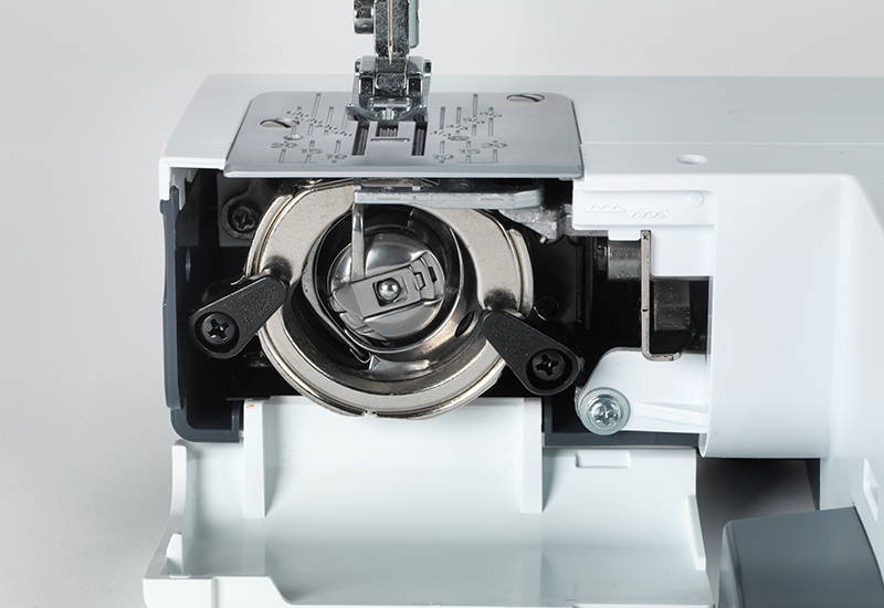Nowoczesny chwytacz wahadłowy Central Bobbin. Zapewnia płynną pracę i stabilne wiązanie ściegu, a także wygodę podczas zakładania bębenka. To praktyczne rozwiązanie dla osób, które chcą szybkiej obsługi i przewidywalnych rezultatów na różnych materiałach.