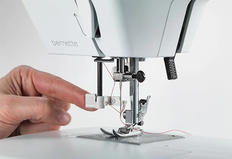Maszyna do szycia Bernette 35 jest wyposażona w komfortowy nawlekacz igły. Zrobisz to nawet bez okularów! To duże ułatwienie przy częstej zmianie nici lub koloru – szczególnie gdy szyjesz dekoracyjnie, pikujesz lub pracujesz nad kilkoma elementami jednocześnie.