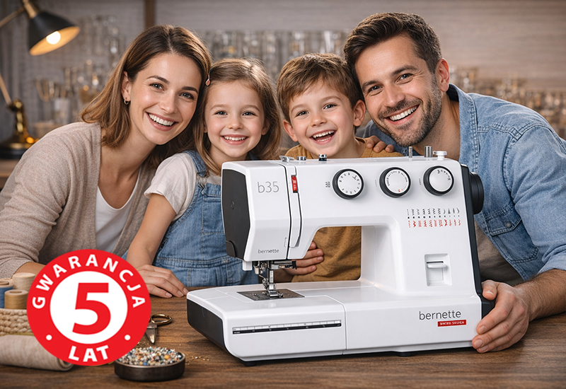 Wszystkie podzespoły i części w maszynie są objęte 5-letnią gwarancją, a serwis działa w systemie door-to-door (od drzwi do drzwi). Kupujesz spokojniej i używasz wygodniej – gdy pojawi się potrzeba, masz wsparcie bez szukania punktu stacjonarnego. Wybierz Bernette B35 i zacznij szyć projekty, które wyglądają jak gotowe produkty – dodaj do koszyka i przekonaj się, jak przyjemne może być szycie z maszyną, która naprawdę nadąża za Twoimi pomysłami.