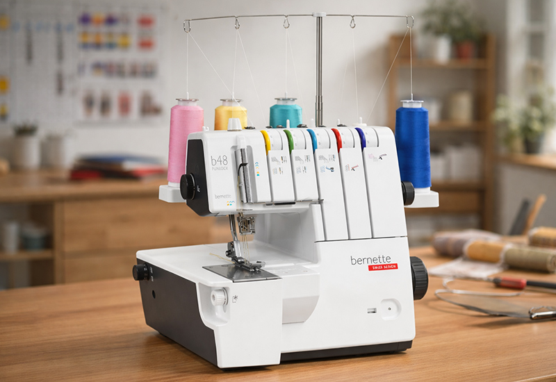 Bernette 48 FUNLOCK – profesjonalne wykończenie dzianin w Twojej pracowni (owerlok 5-nitkowy + coverlock z dwuigłówką)