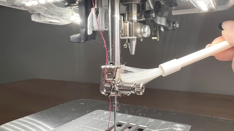 - Przeprowadź czyszczenie ząbków transportera: wymiataj kurz pędzelkiem, nie wciskając go głęboko.