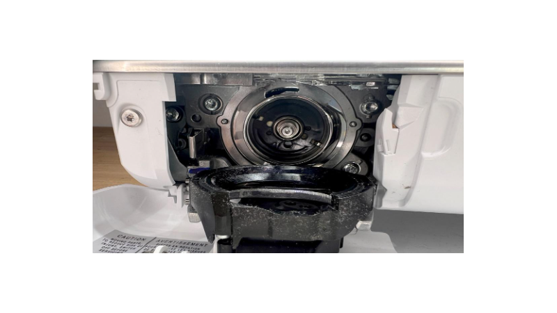 - Wyjmij bębenek (w zależności od konstrukcji) i wykonaj czyszczenie bębenka w maszynie do szycia.