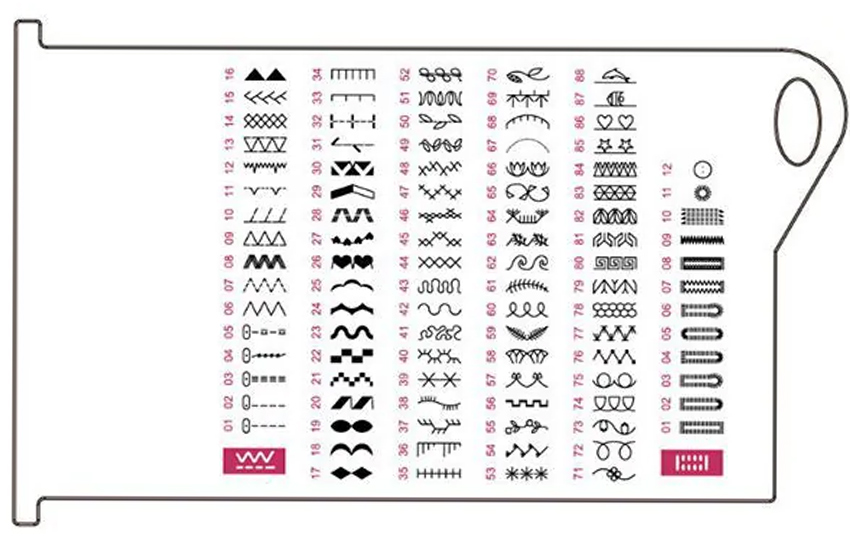 Szybki i łatwy wybór 100 ściegów za pomocą przycisków. Do dyspozycji mamy ściegi użytkowe i piękne ściegi dekoracyjne, co pozwala zarówno na praktyczne poprawki, jak i na kreatywne projekty (ozdobne przeszycia na odzieży, dekoracje domowe, akcesoria).