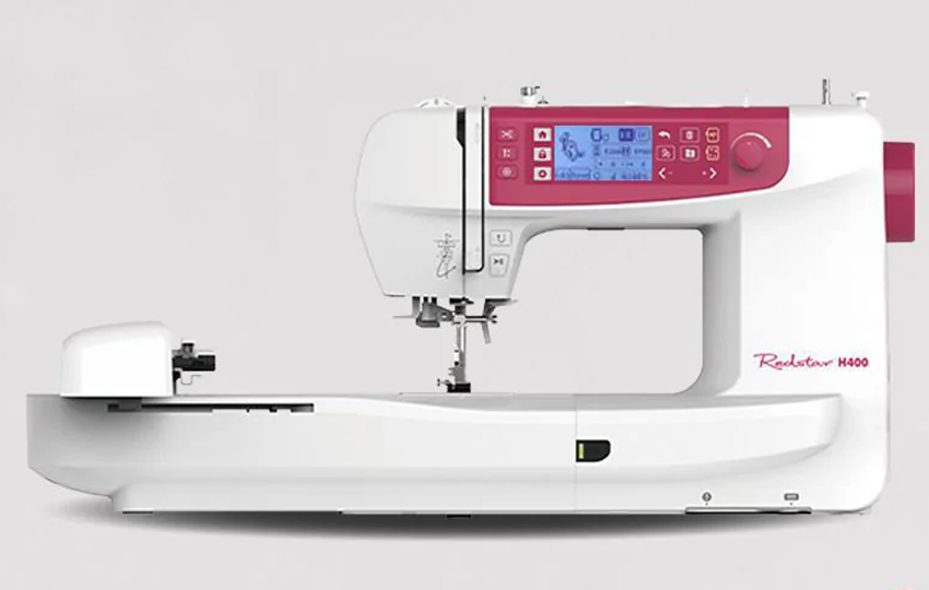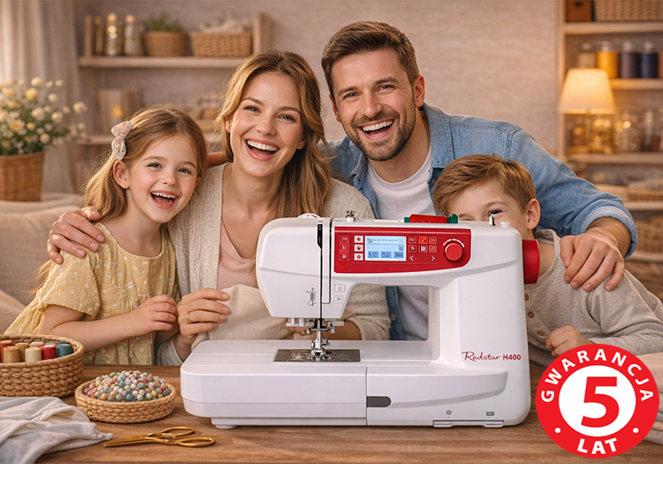 Wyposażona jest w wygodny panel dotykowy z rysikiem. Posiada ponad 100 ściegów do wyboru w części szyjącej. Wykonuje automatycznie 12 dziurek na wymiar guzika. Redstar H400 jest wyposażona w szereg przydatnych funkcji. Funkcja Start/Stop umożliwia pracę bez regulatora obrotów, funkcja wiązania ściegów zabezpieczy ścieg przed pruciem. Jest też automat obcinający nici po zakończeniu ściegu oraz pozycjonowanie igły. Maszyna posiada zaawansowany automat do nawlekania igły i 8 stopek w wyposażeniu standardowym. Druga część to haftowanie na tamborku. Wielkość haftów to 180 x 120 mm. W zestawie mamy 100 haftów różnych tematycznie do wyhaftowania oraz 120 pięknych ramek, które możemy wykorzystać przy haftowaniu monogramów. Możemy też haftować swoje wzory, które importujemy łatwo poprzez port USB z klucza pamięci. Co ważne w komplecie dostajemy bezpłatnie program do projektowania i łączenia wzorów EZDesign. Instrukcje do maszyny i programu są w języku polskim.