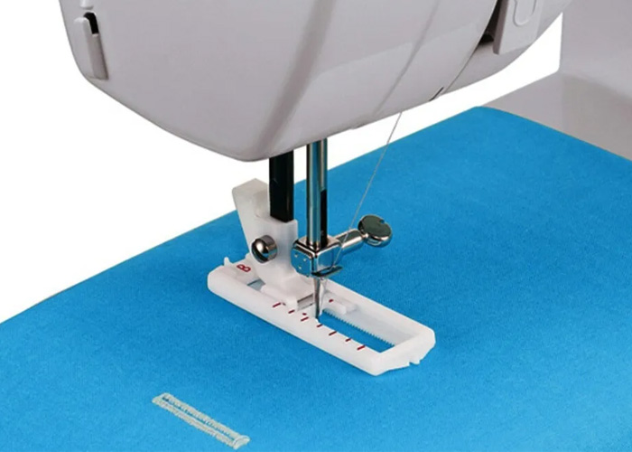 Duża przestrzeń pod stopką umożliwia szycie grubszych materiałów i wielu warstw bez „blokowania” transportu. To bardzo wygodne rozwiązanie przy szyciu dżinsu, tkanin tapicerskich, płaszczy, toreb, a także podczas naszywania aplikacji czy przeszywania miejsc z wieloma zakładkami. Łatwiej jest też szyć skórę (z odpowiednią igłą i stopką) oraz grubsze przeszycia konstrukcyjne.