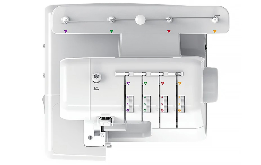 Otwarte prowadniki nici mają oznaczoną kolorami całą drogę przebiegu nitek. Założenie nitek jest proste i szybkie. Kolorowe oznaczenia minimalizują ryzyko pomyłki, co szczególnie docenią osoby rozpoczynające pracę z owerlokiem oraz wszyscy, którzy często zmieniają kolory nici pod konkretny projekt.